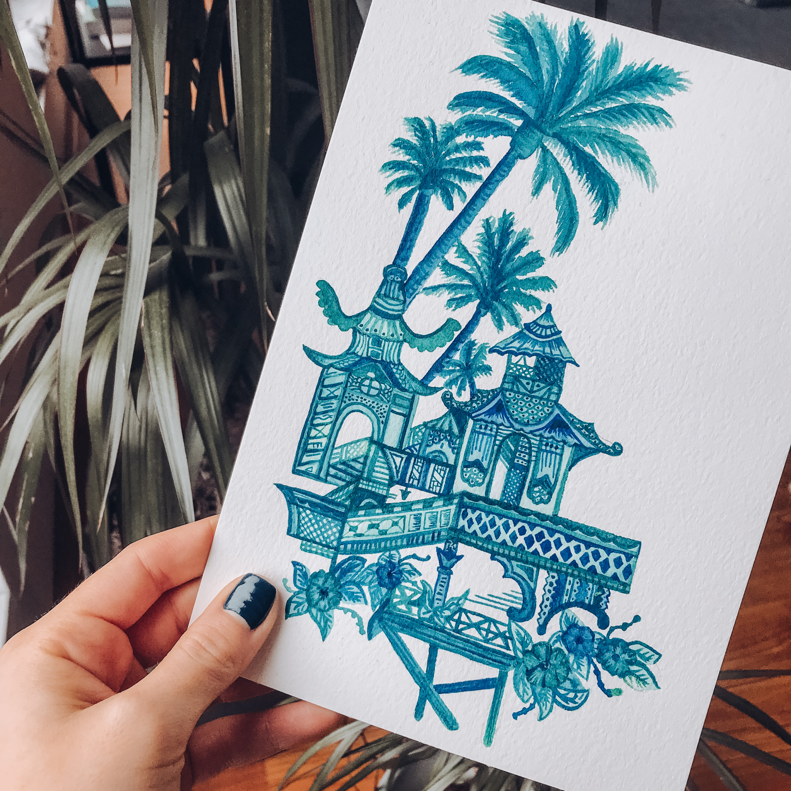 Pattern developed with watercolor.